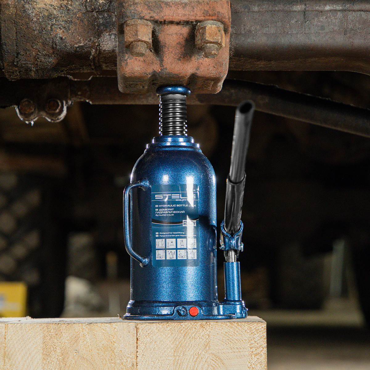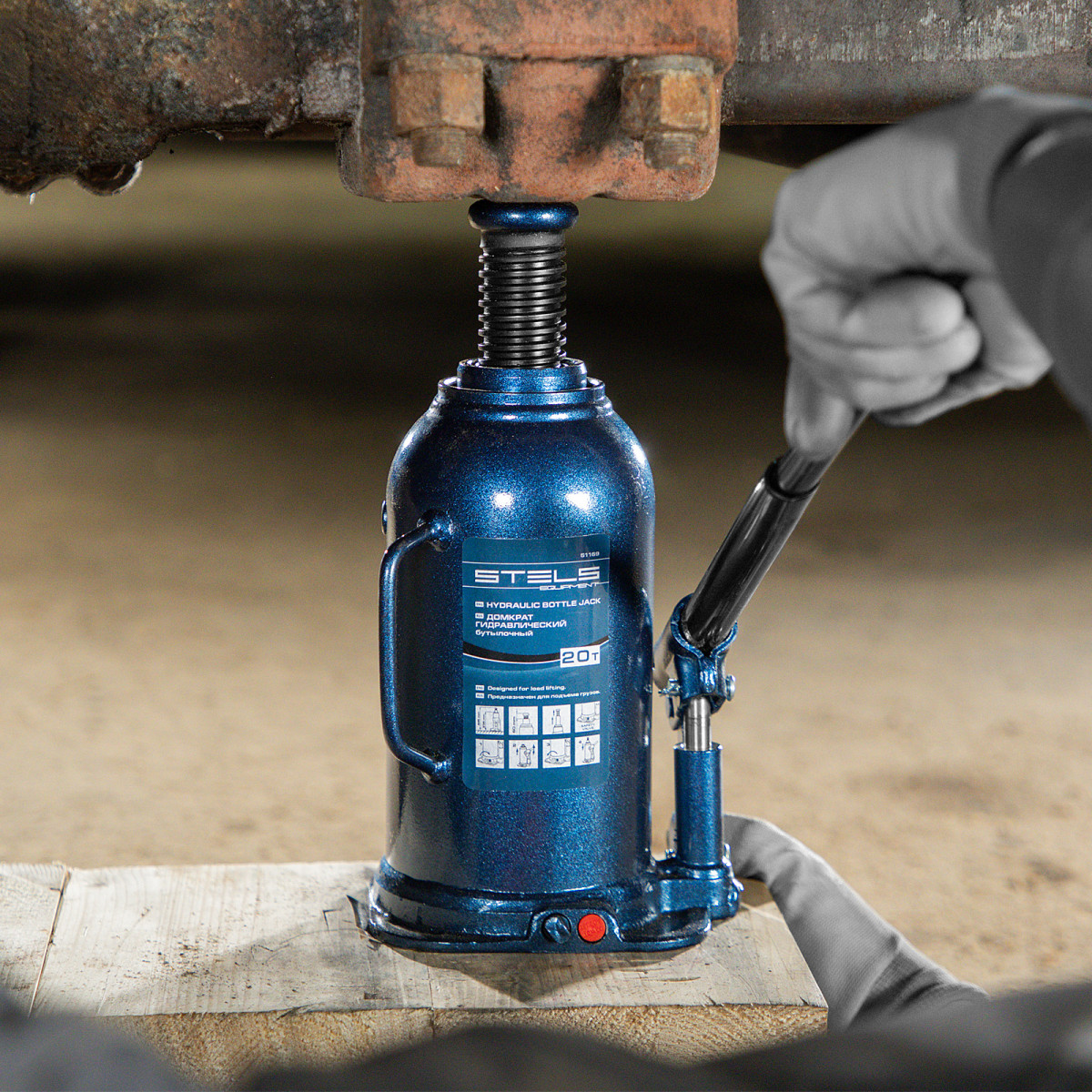 - Безопасная эксплуатация — благодаря предохранительному клапану домкрат не поднимает грузы тяжелее 20 т.