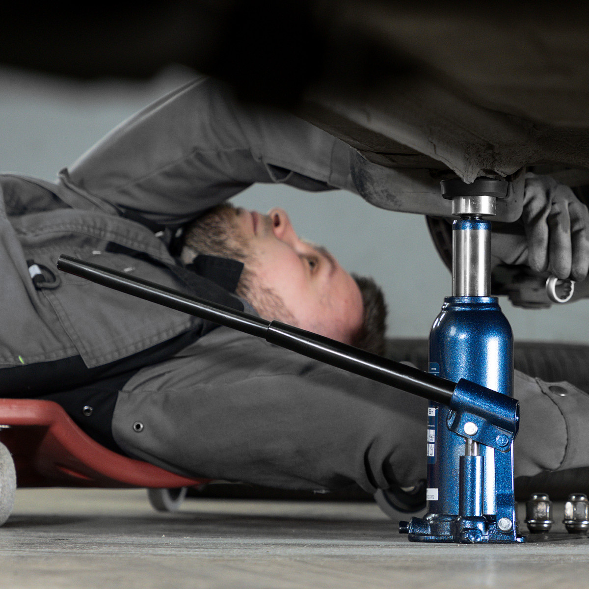 • Удобное хранение и транспортировка — домкрат поставляется в пластиковом кейсе.