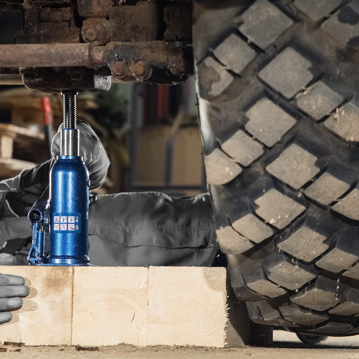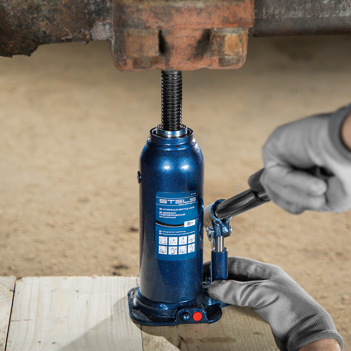 - Безопасная эксплуатация — благодаря предохранительному клапану домкрат не поднимает грузы тяжелее 8000 кг.