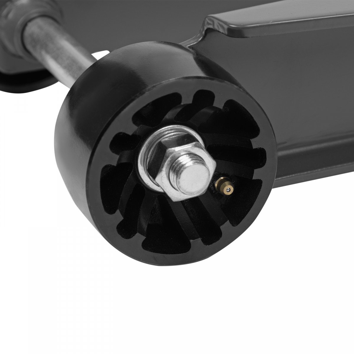 - Внимание к деталям — передние колеса домкрата имеют масленки для смазки подшипников, такое решение исключает возможность заклинивания механизма во время интенсивной работы.