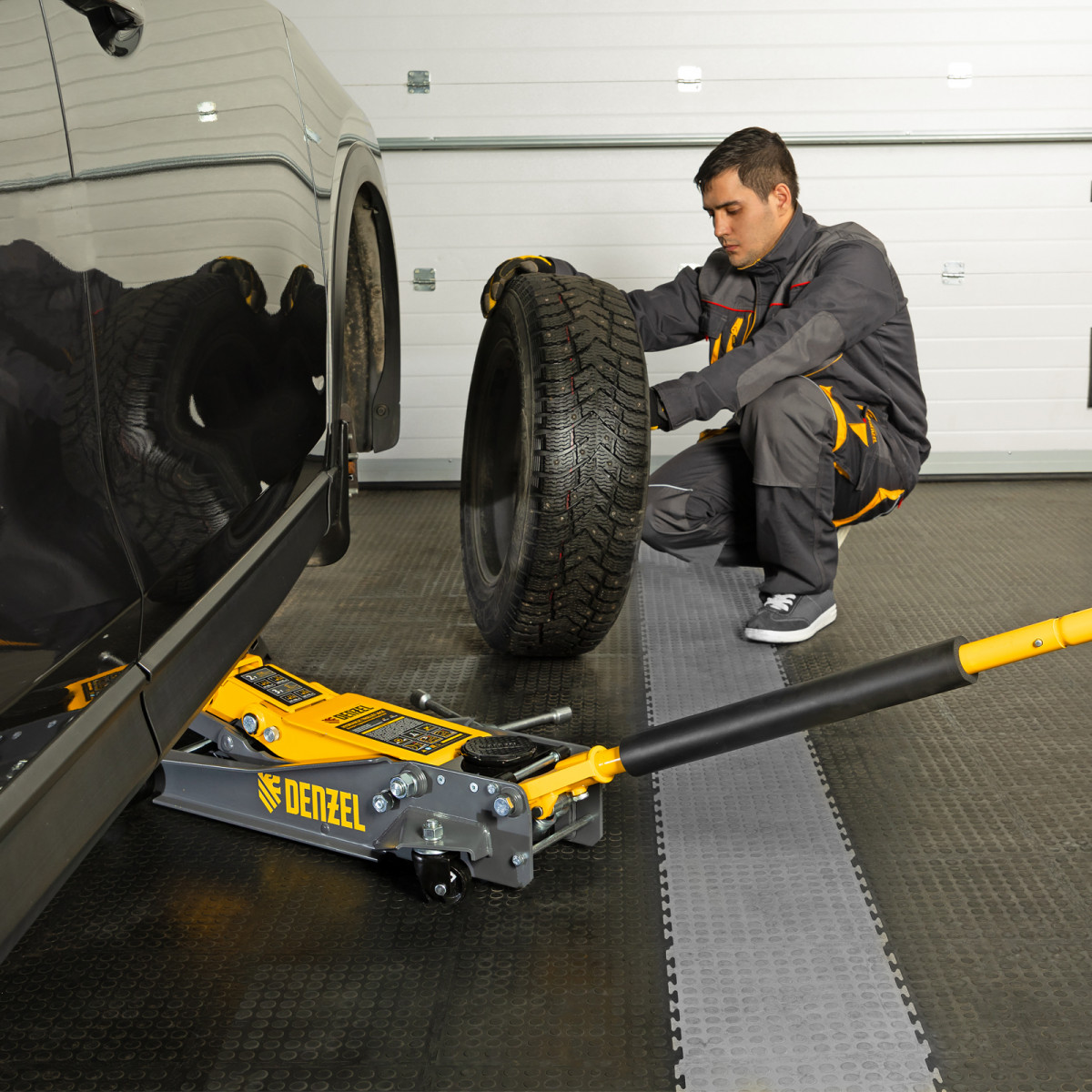 - Аккуратная работа — резиновая опора и прорезиненная рукоятка защищают кузов и днище автомобиля от нежелательных повреждений.