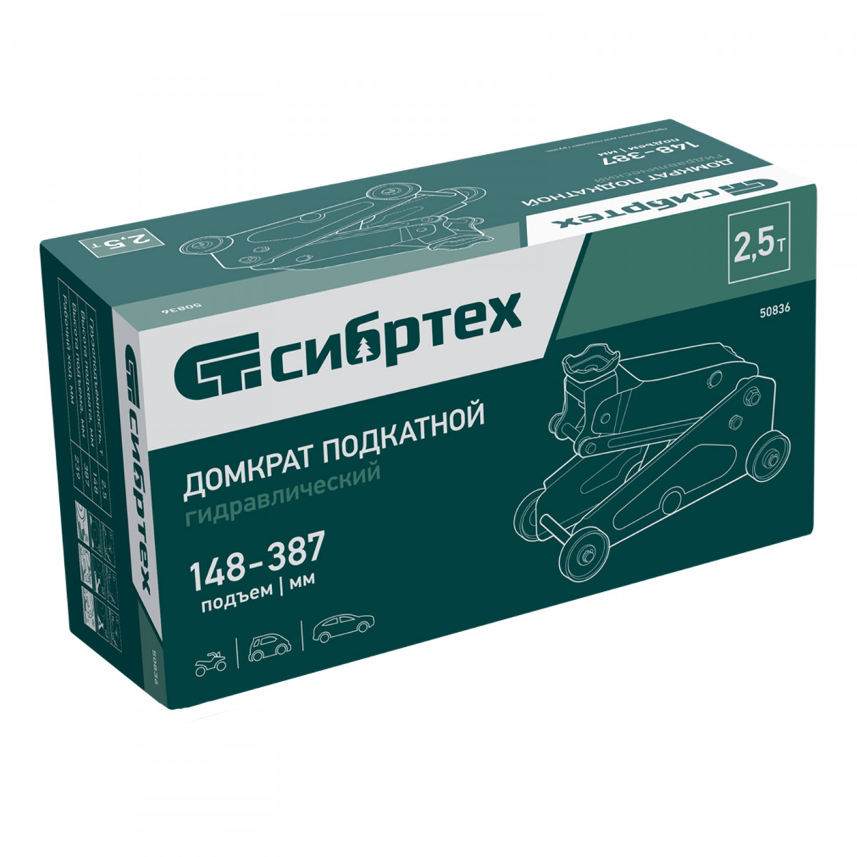 Домкрат гидравлический подкатной, 2,5 т, 148-387 мм Сибртех