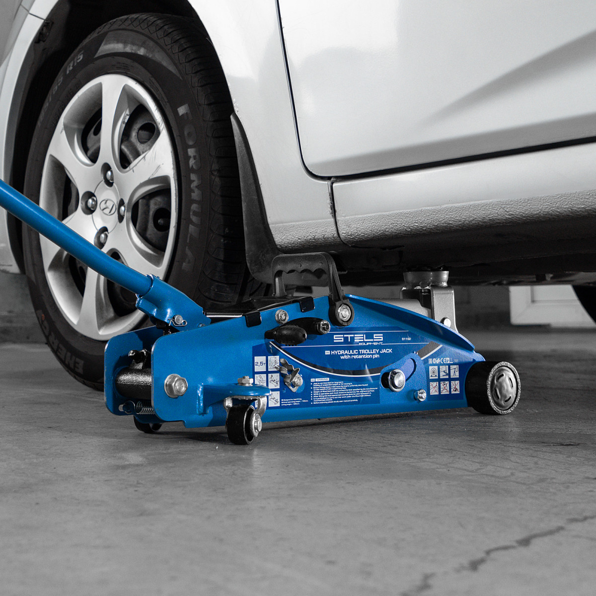 Подкатной гидравлический домкрат Stels Safety Pin 51152 с фиксатором, с высотой подхвата 140 мм, позволяет поднимать грузы весом до 2,5 т на высоту 385 мм. За счет низкого подхвата используется для обслуживания автомашин со стандартным дорожным просветом. Домкрат подходит для самостоятельного обслуживания авто.