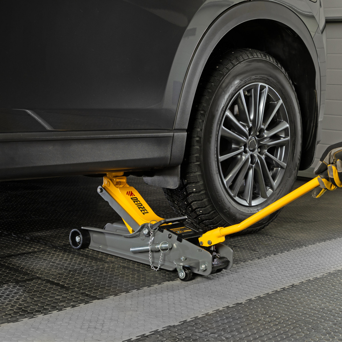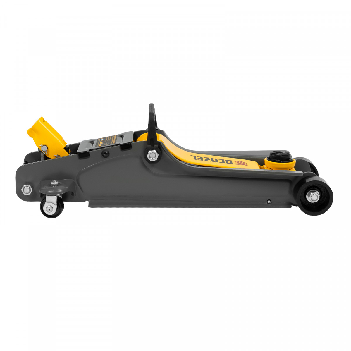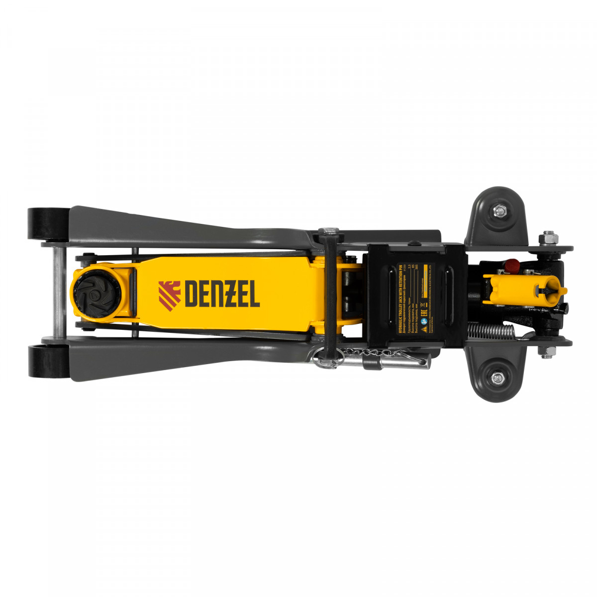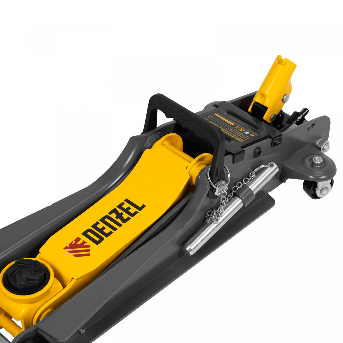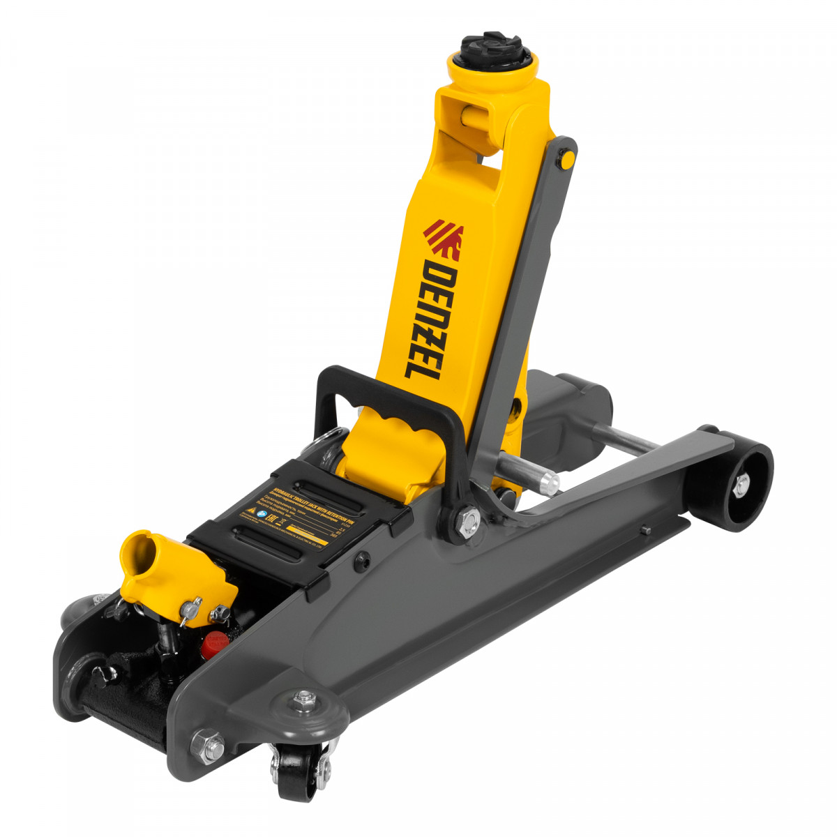 Домкрат гидравлический подкатной с фиксатором, 2,5 т, 85-385 мм, в пласт. кейсе Denzel