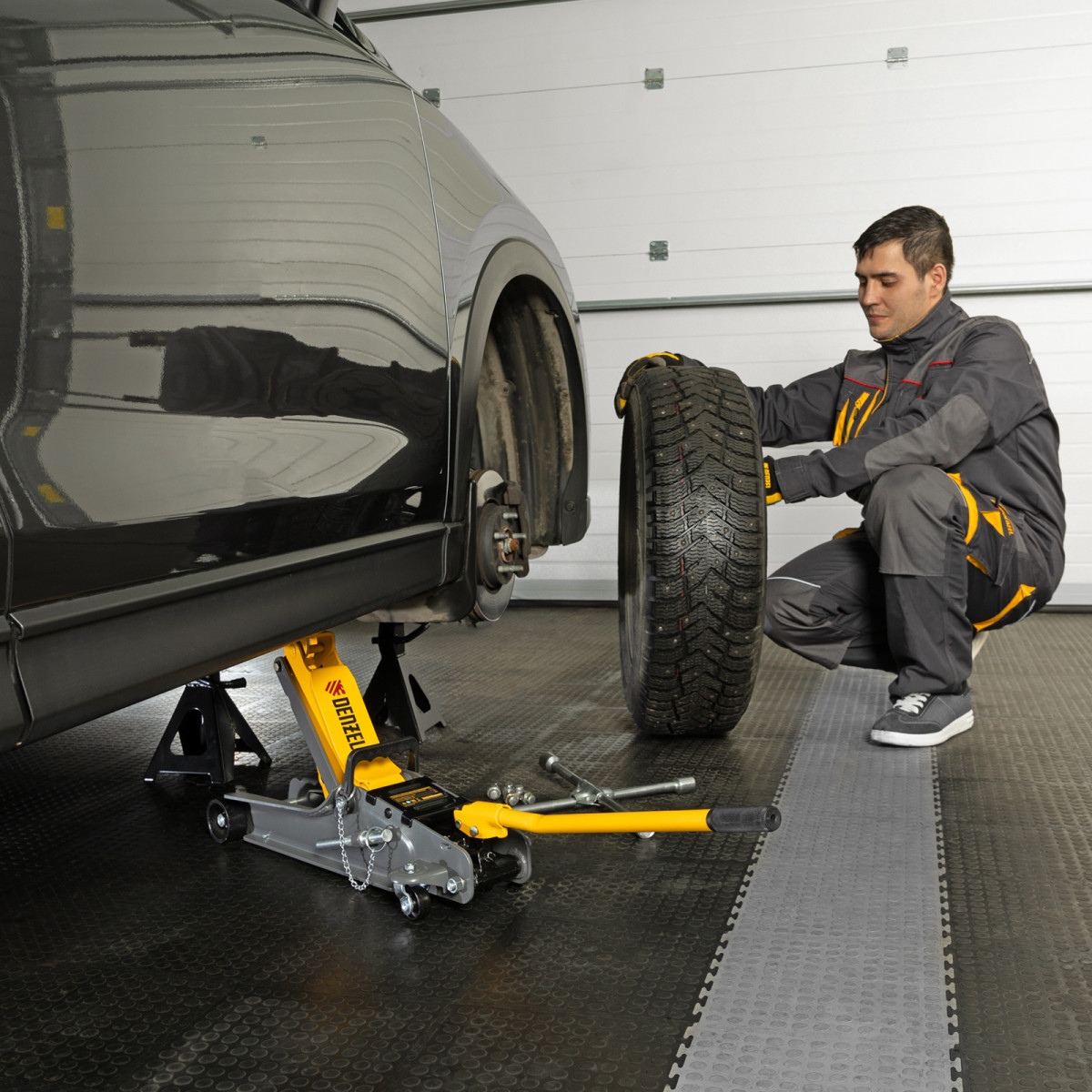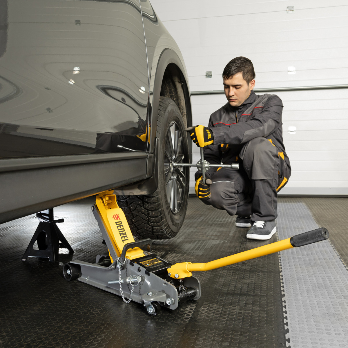 • Аккуратная работа — резиновая опора защищает днище автомобиля от нежелательных повреждений.