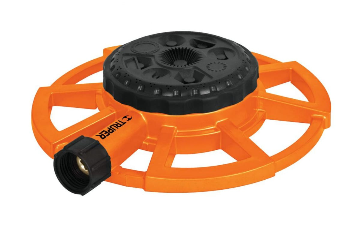 Дождеватель TRUPER 10328 используется на садово-огородных участках с целью стационарного полива насаждений. Он поддерживает 8 режимов работы, которые можно выбрать в зависимости от площади и формы участка. К шлангу подключается с помощью соединителя. Основание дождевателя выполнено из алюминия, что обеспечивает прочность и долгий срок службы. Диаметр полива - 25 м.