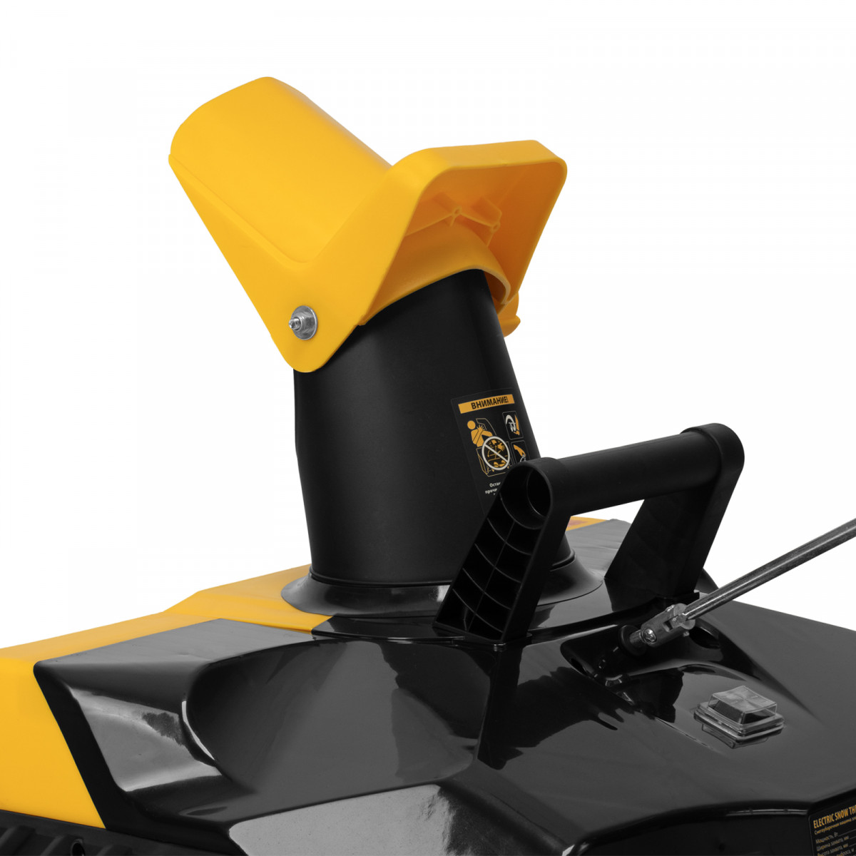 - Простая регулировка направления выброса снега — удобная рукоятка поворота желоба избавляет пользователя от необходимости наклоняться.