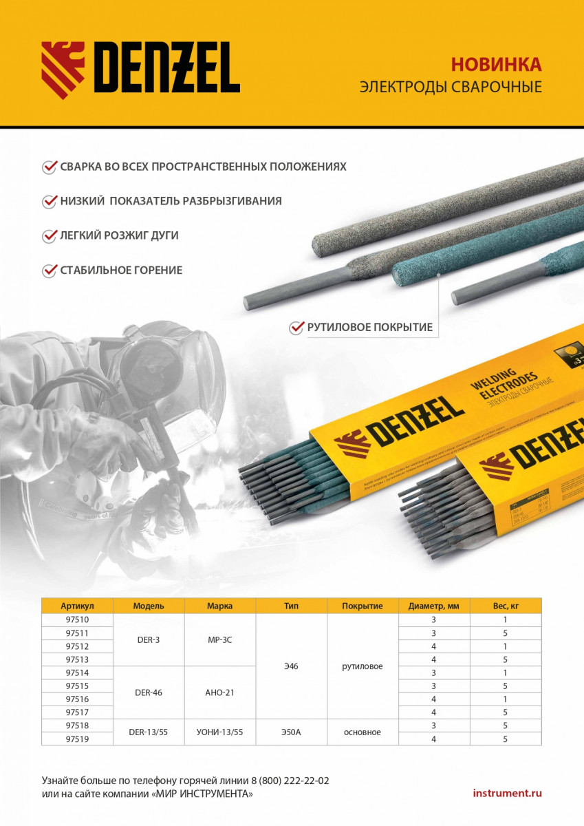 Электроды DER-3, диам. 3 мм, 1 кг, рутиловое покрытие Denzel