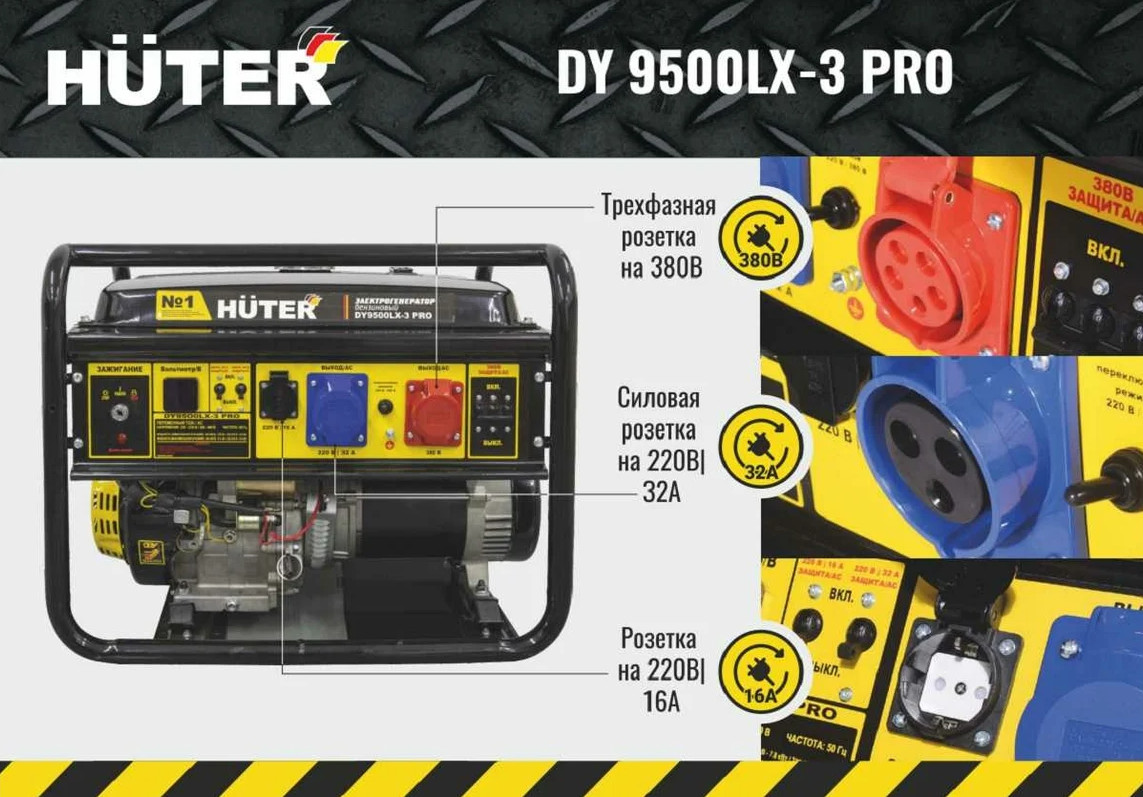 Электрогенератор DY9500LX-3 PRO-электростартер (380В/220В) HUTER