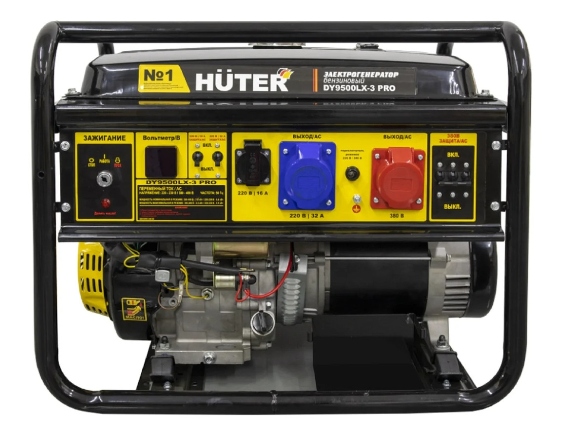 Электрогенератор Huter DY9500LX-3 PRO-электростартер 380В/220В 64/1/77 – портативная компактная электростанция, обеспечивающая электроснабжение бытовой техники и профессионального оборудования, питающегося от стандартной сети 220, а также 380 Вольт. Это самый выгодный бензиновый электрогенератор, с оптимальными техническими характеристиками и низким расходом топлива.
