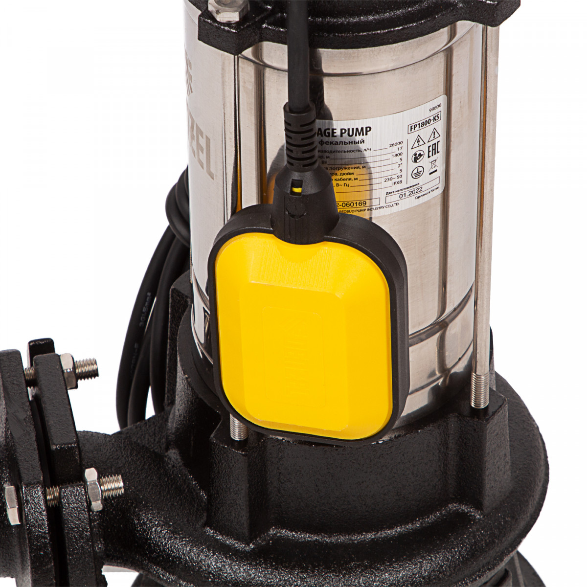 Фекальный насос FP1800-KS, 1800 Вт, напор 17 м, 26000 л/ч, нож-измельчитель Denzel