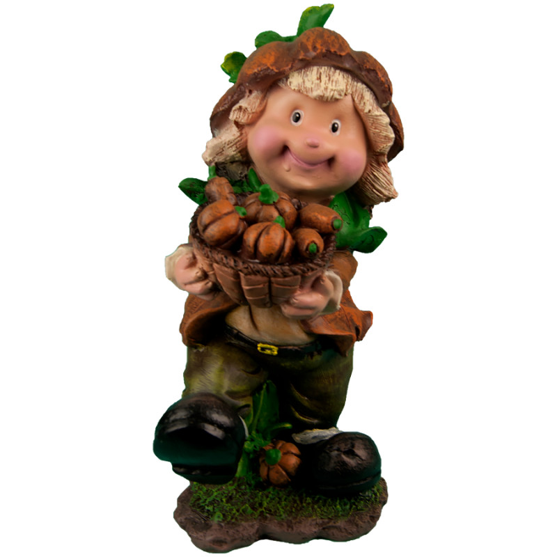 Фигура садовая Гномик с корзинкой тыкв