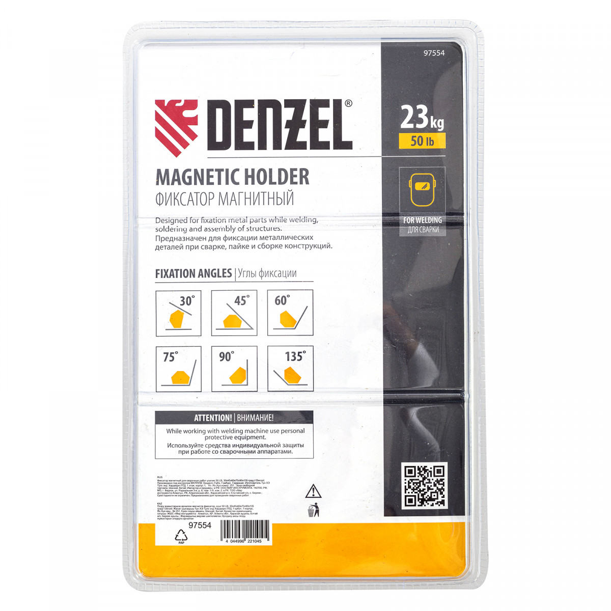 Фиксатор магнитный для сварочных работ усилие 50 LB, 30х45х60х75х90х135 град. Denzel
