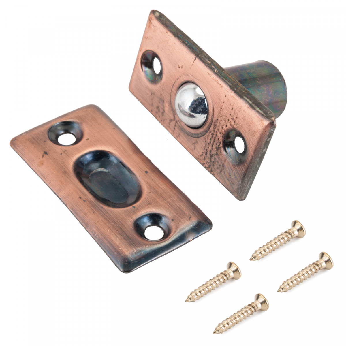 Фиксатор дверной с шариком. Предназначен для запирания межкомнатных дверей (алюминиевых, деревянных, из МДФ и ПВХ). Защелка не запирает, а защелкивает полотно, тем самым удерживая его в дверном проеме. Материал - ЦАМ, гальваническое покрытие. Габариты торцевой планки - 47х20 мм. В комплекте шурупы и ответная планка.