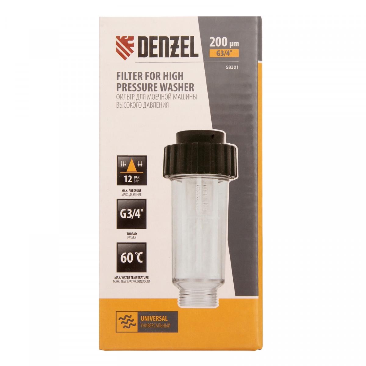 Фильтр для моечных машин высокого давления, G3/4 дюйм, универсальный Denzel