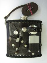 Фляжка из нержавеющей стали, обшитая тисненой натуральной кожей под крокодиловую, коричневого или черного цвета, со съемным ремешком