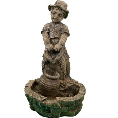 Садовый фонтан - декоративный и функциональный. Для установки и подключения необходимы электричество и вода. Далее необходимо фонтан подключить к электричеству и вода начинает фонтанировать, увлажняя воздух.