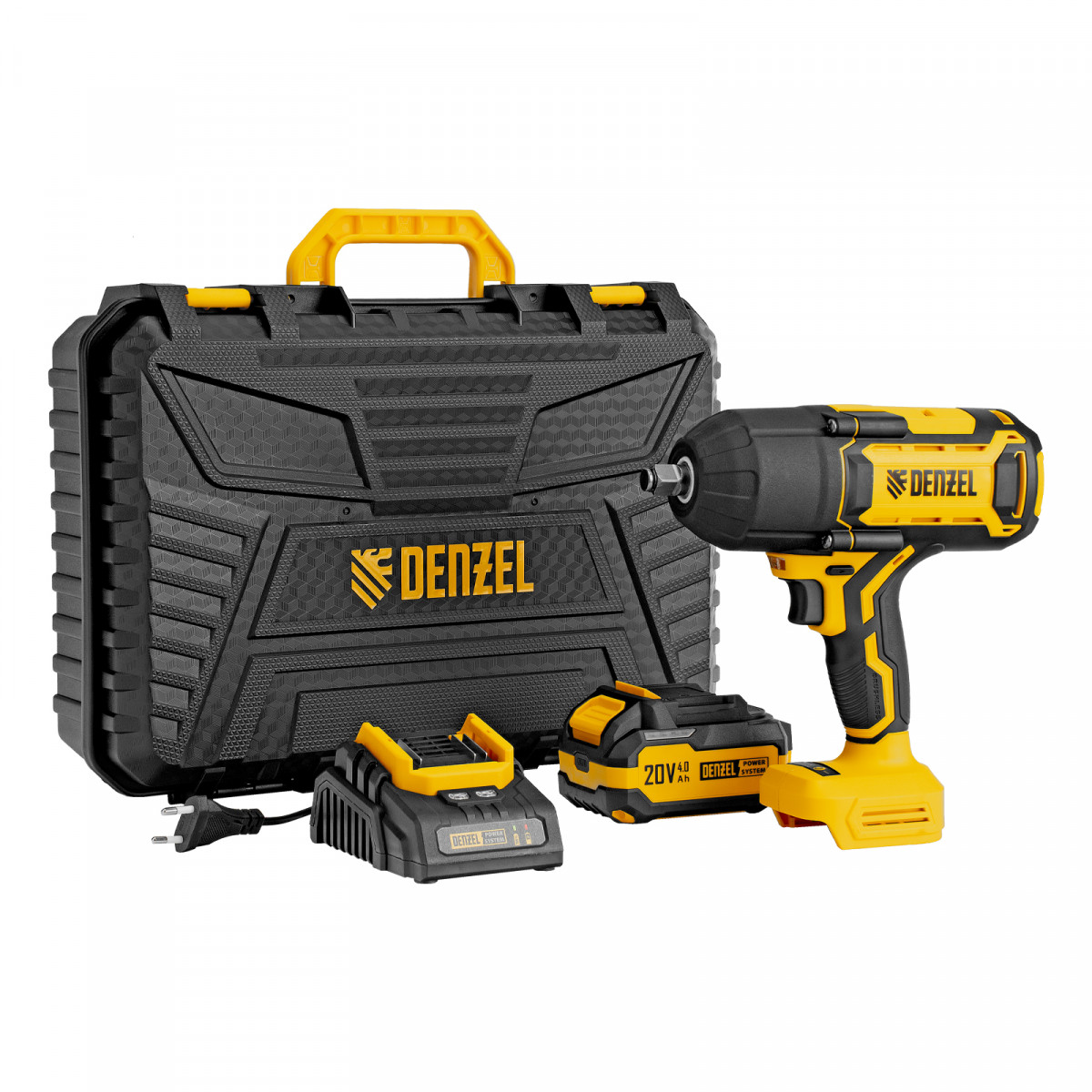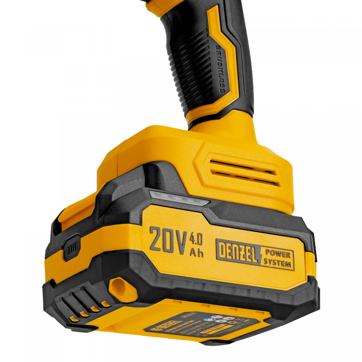• Универсальность — аккумулятор Li-Ion емкостью 4 А·ч совместим со всеми инструментами единой платформы Denzel Power System 20V.