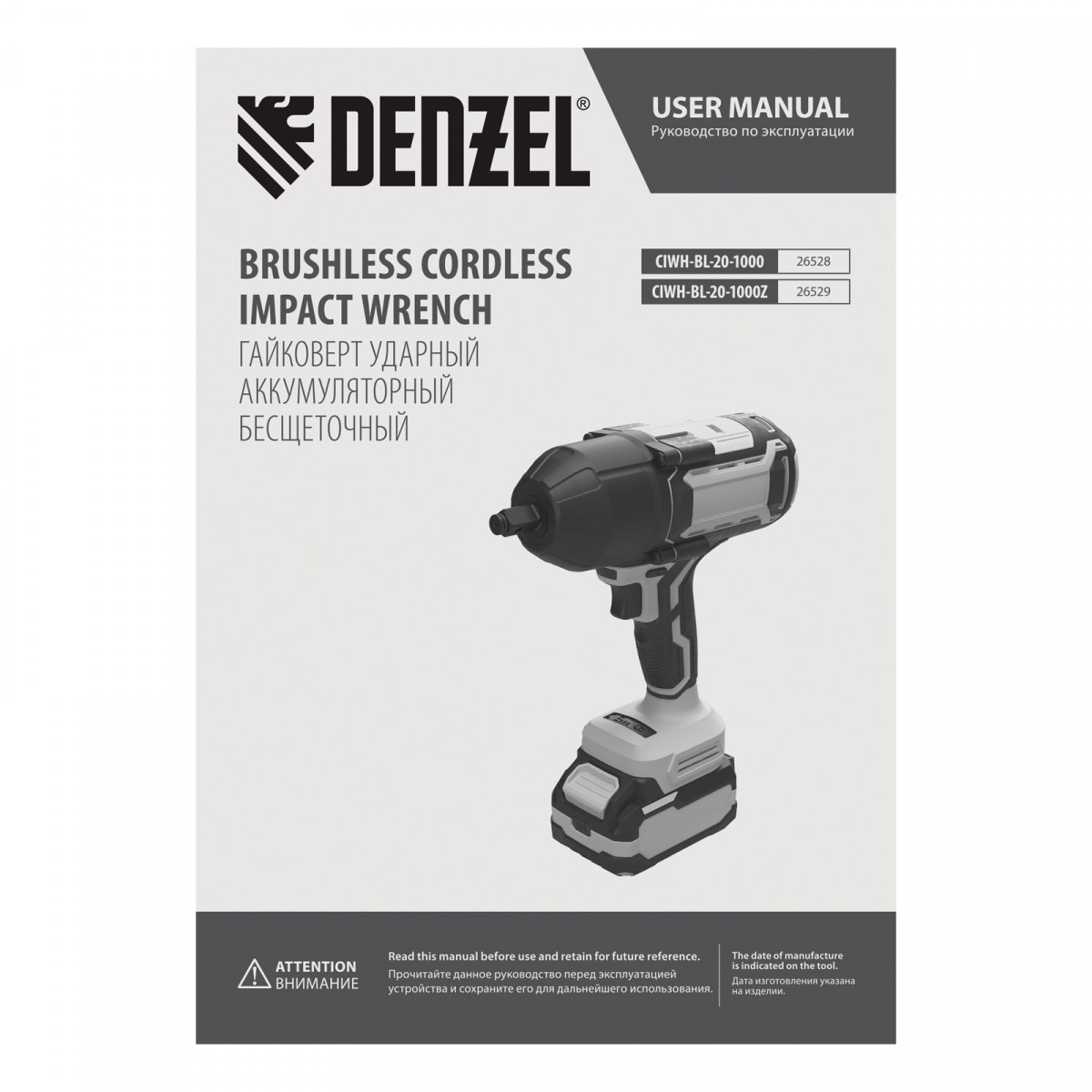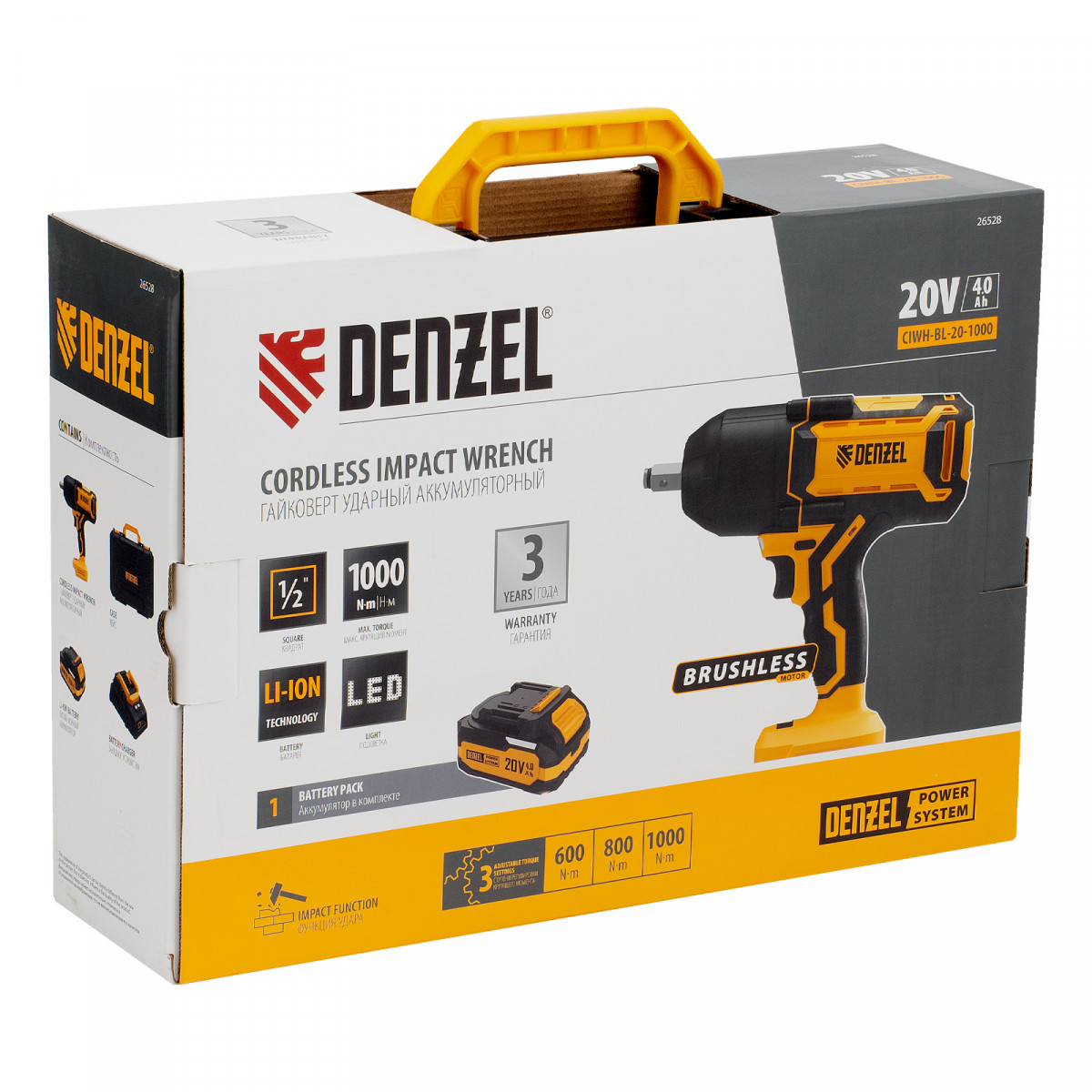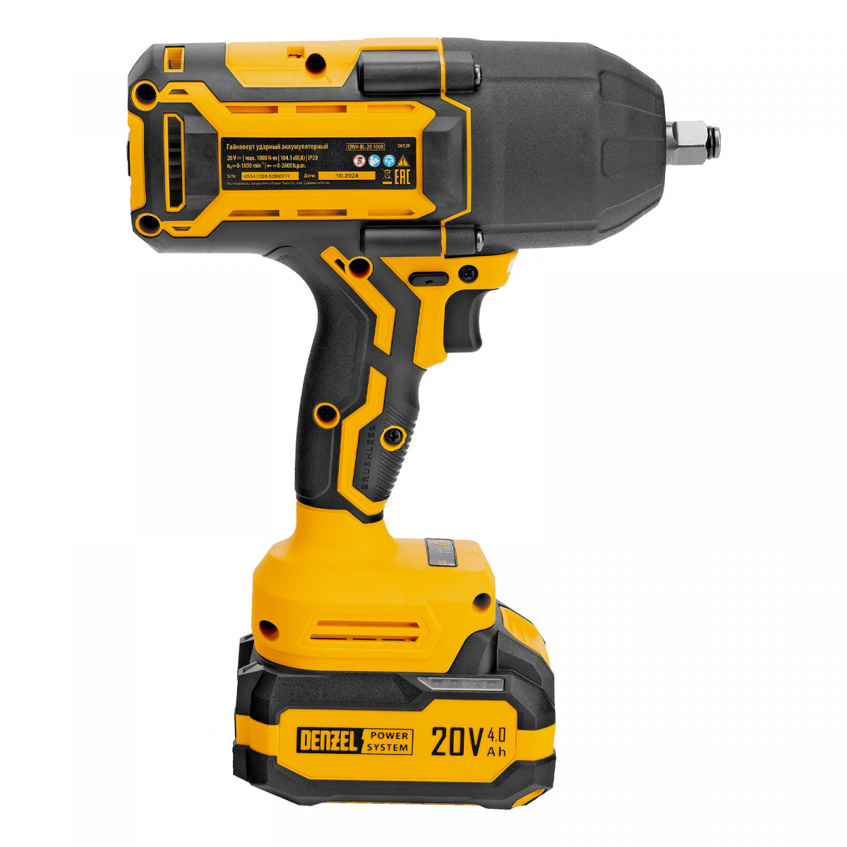 Гайковерт ударный аккумуляторный бесщет. CIWH-BL-20-1000, Li-Ion, 20 В// Denzel