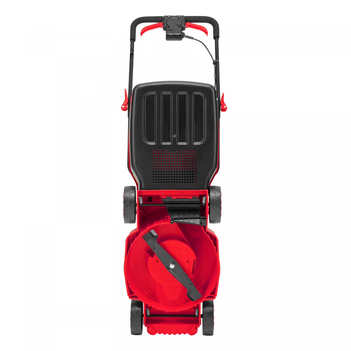 - Простой уход — пластиковый травосборник удобно опустошать и очищать.