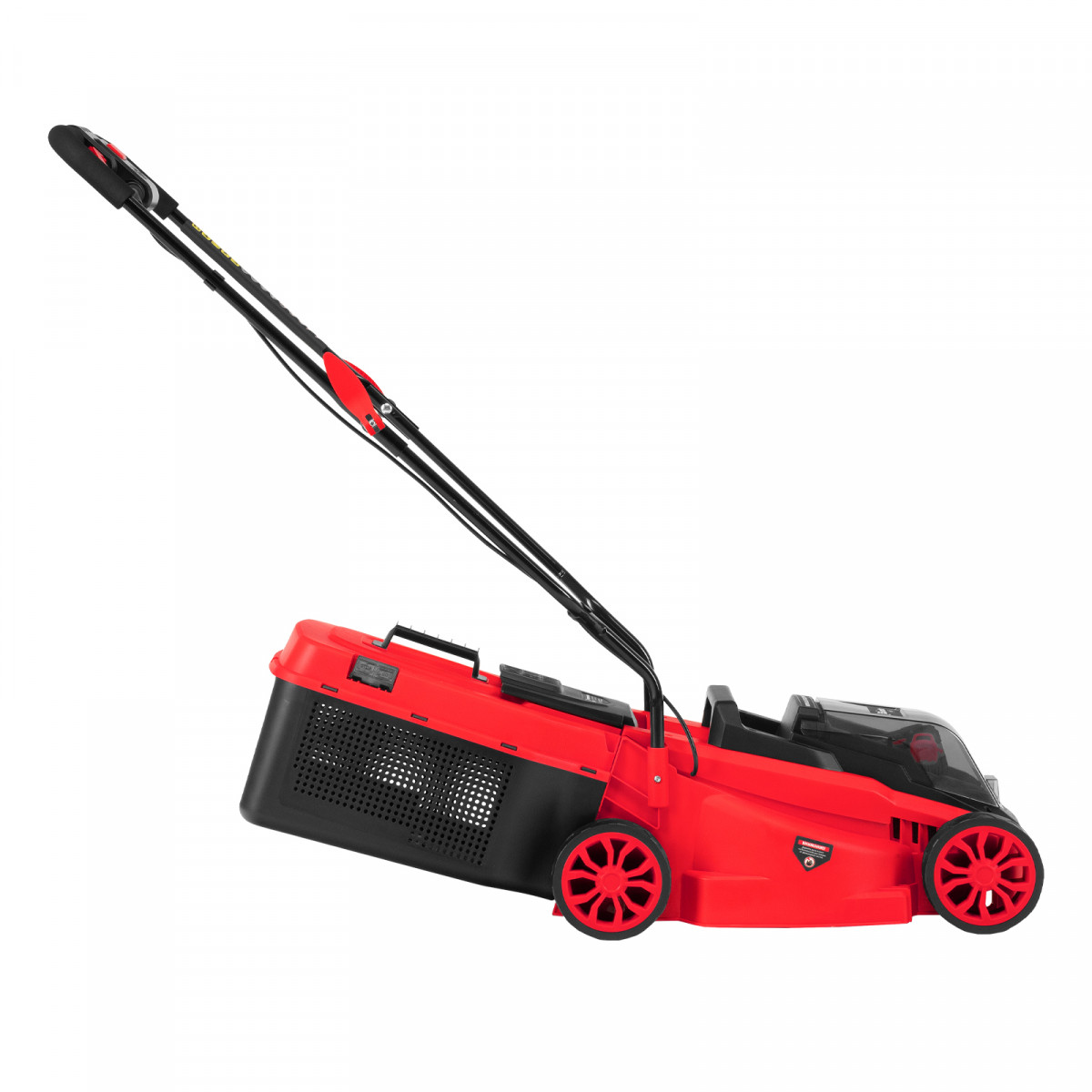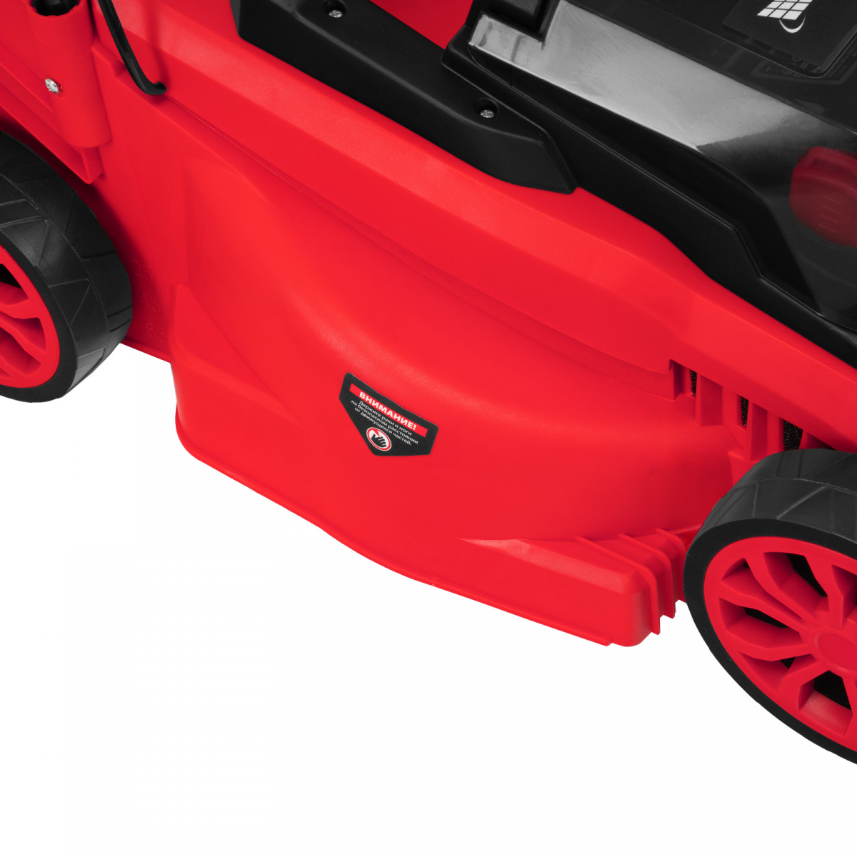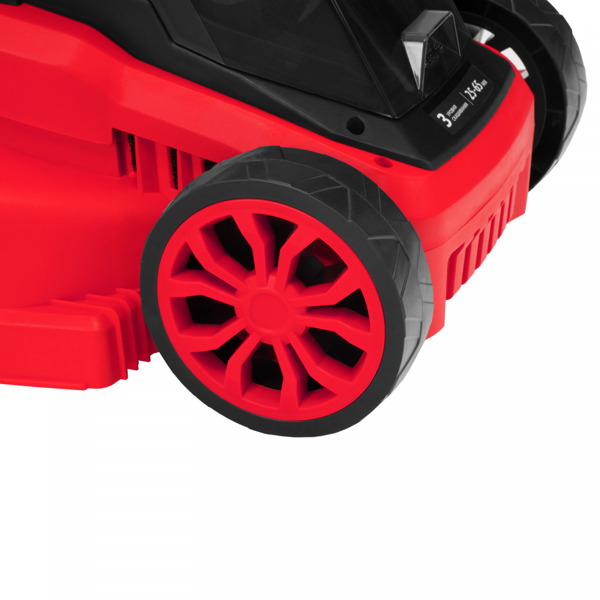 - Небольшой вес 9,6 кг — газонокосилку удобно перемещать и направлять.