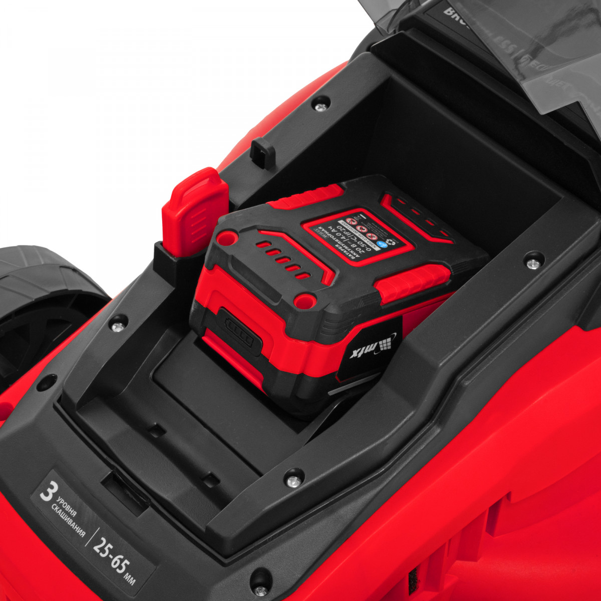 - Быстрая зарядка — газонокосилка будет готова к работе через 1,5 часа.