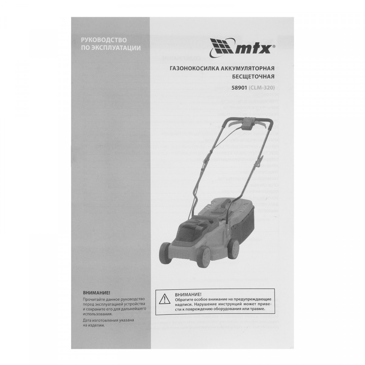 Газонокосилка аккумуляторная бесщеточная CLM-320, 320 мм, травосб. 30 л, Li-Ion, 20 В MTX