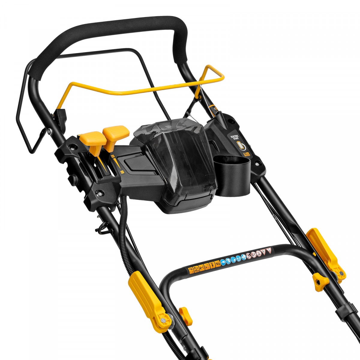 • Электрический старт — запуск двигателя значительно упрощен (электростарт работает на единой аккумуляторной платформе Denzel 18 В, подойдет любой аккумулятор емкостью 2 А·ч — арт. 28433 либо арт. 28435).