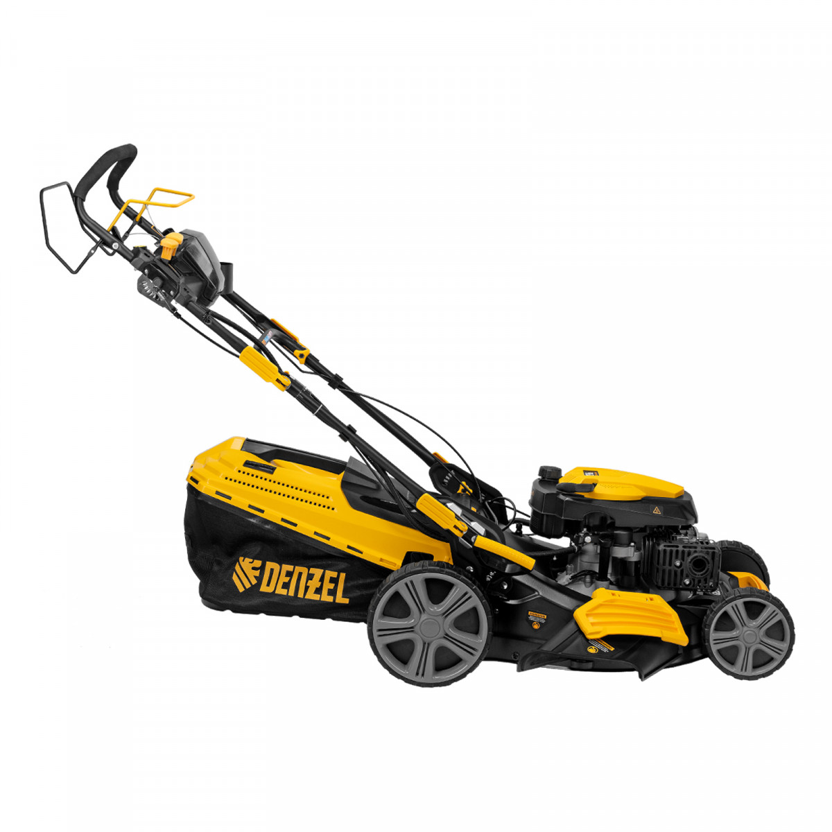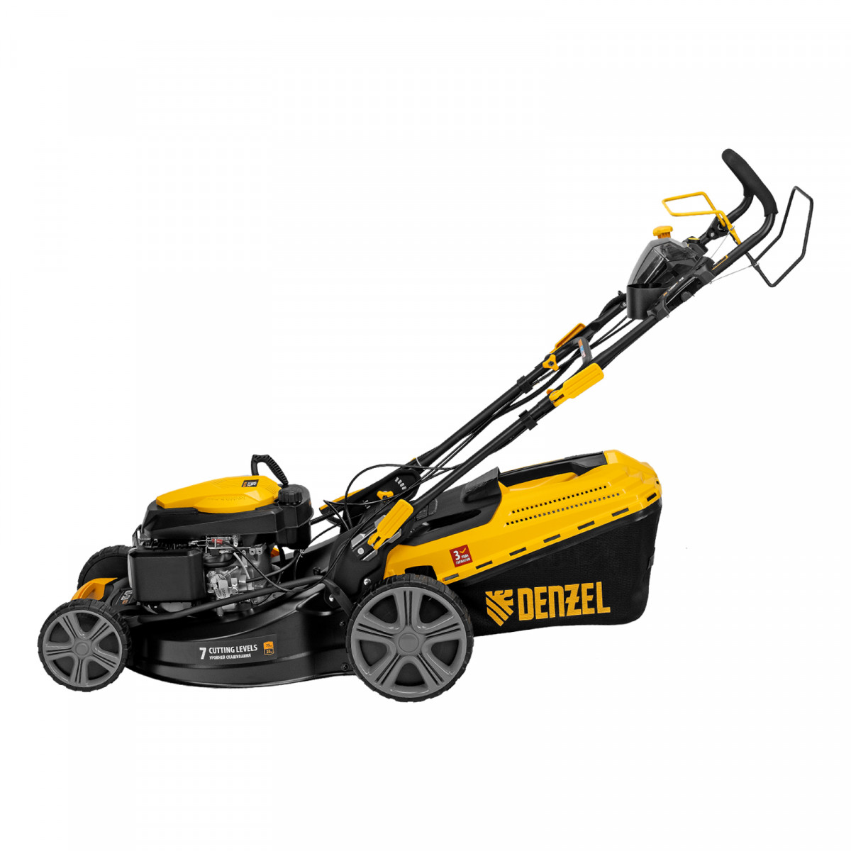Бензиновая газонокосилка Denzel GLD-520SP-VE 58806 с приводом на колеса и вариатором оснащена двигателем объемом 196 см3 и электрическим стартом. Обеспечивает ширину скашивания 52 см за один проход и собирает траву в контейнер объемом 60 л. Идеально подходит для благоустройства дачной территории, обновления газонов и дорожек. Благодаря двигателю мощностью 6,5 л.с. справляется даже с густым бурьяном.