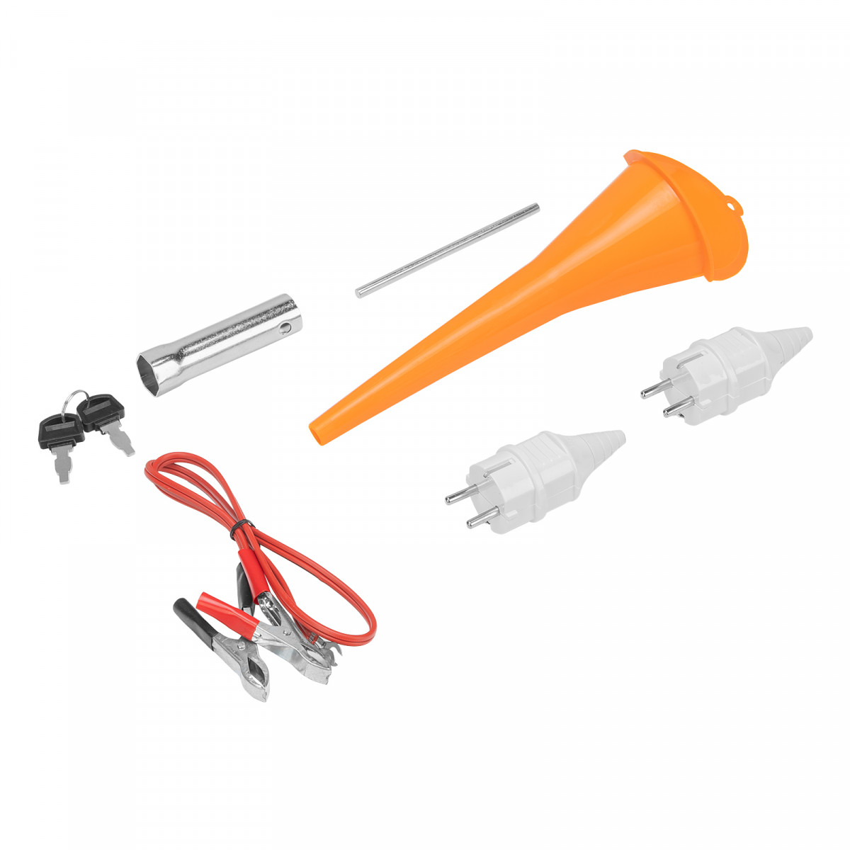 • Полная готовность к работе — в комплект входят аккумулятор, свечной ключ, 2 вилки 230В/16А и 2 ключа зажигания.