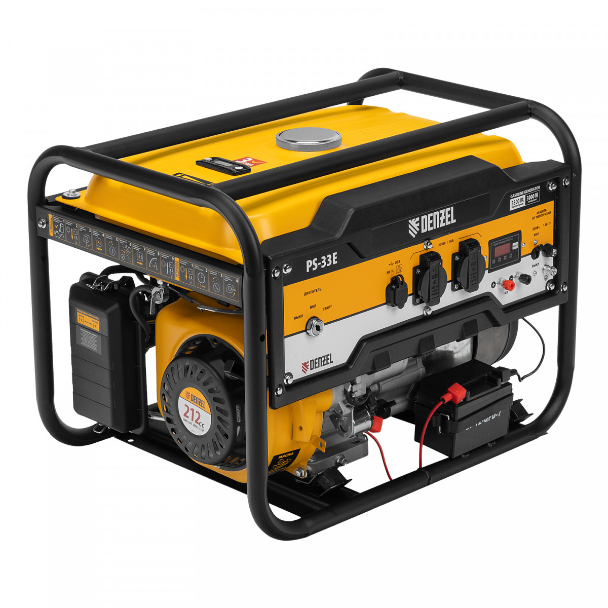 Генератор бензиновый PS-33E, 3.3 кВт, 230В, 15 л, электростартер Denzel