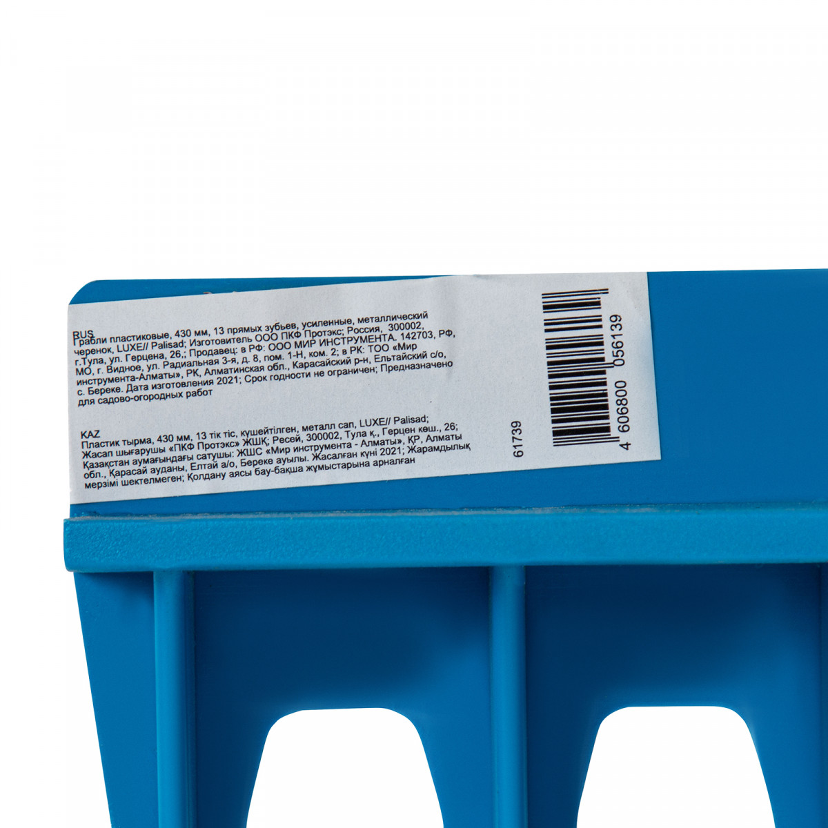 Грабли пластиковые, 430 мм, 13 прямых зубьев, усиленные, металлический черенок, Luxe, Palisad