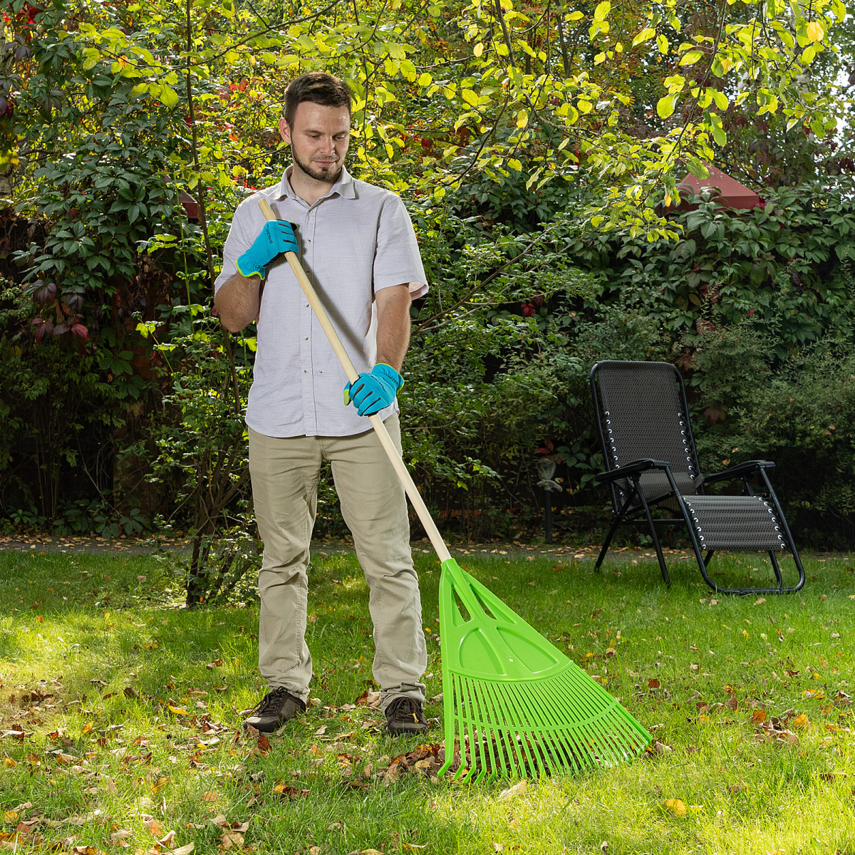 - Надежность и долговечность — грабли изготовлены из эластичного и стойкого к ультрафиолету полипропилена.