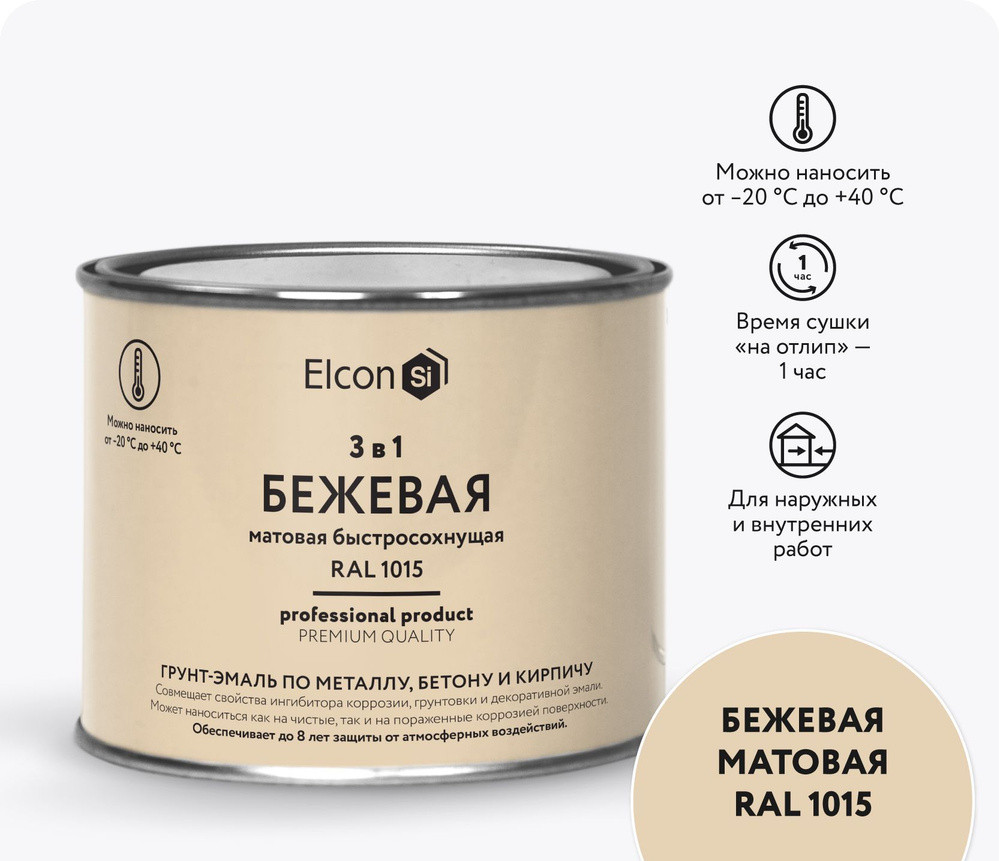 Грунт-эмаль по ржавчине 3в1 Элкон матовая бежевая RAL 1015 0,8 кг