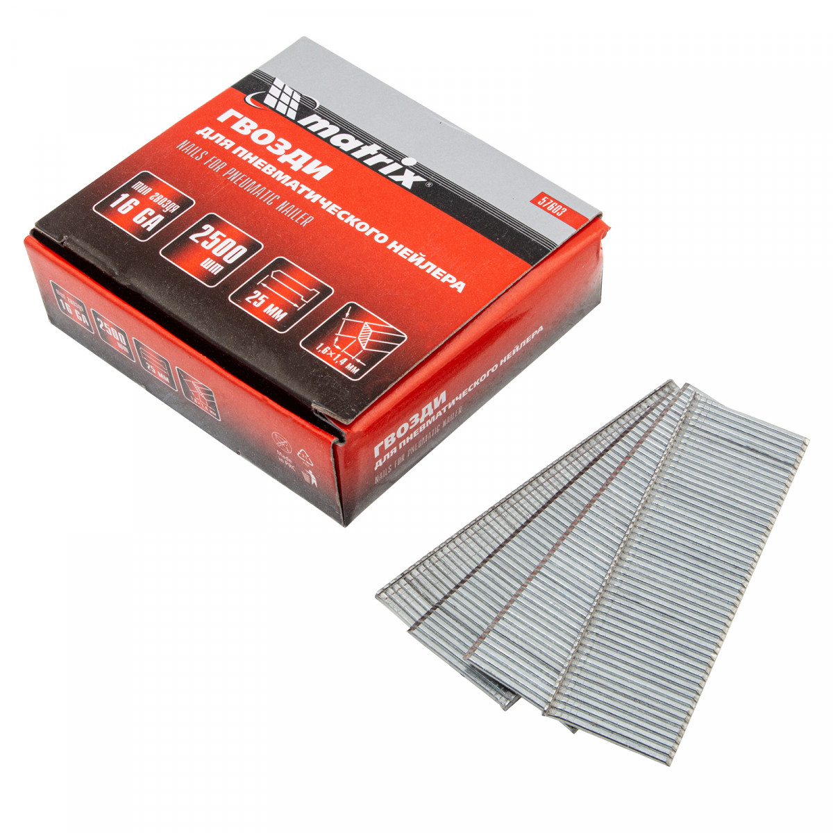 Гвозди для пневматического нейлера 16GA, сечение 1.6 х 1.4, длина 25 мм, 2500 шт Matrix