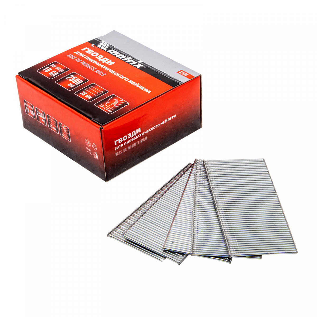 Гвозди для пневматического нейлера 16GA, сечение 1.6 х 1.4, длина 38 мм, 2500 шт Matrix