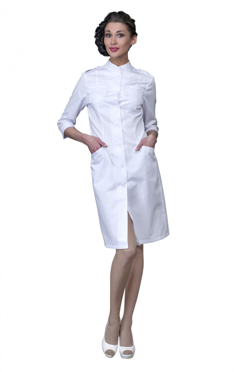 Элегантный халат с комфортной длиной рукава- ¾. Ткань относится к малосминаемым благодаря полиэфирным волокнам в составе. Изделие с вместительными карманами. Удобная резинка на спинке халата создает приталенный силуэт и добавляет женственности.