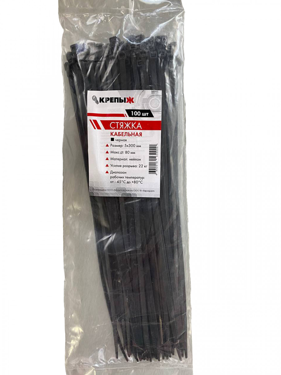 Хомут нейлоновый 5*300 мм черный КРЕПЫЖ (100шт)