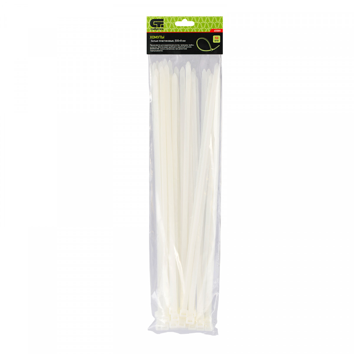 Хомуты, 500 х 8 мм, пластиковые, белые, 50 шт Сибртех
