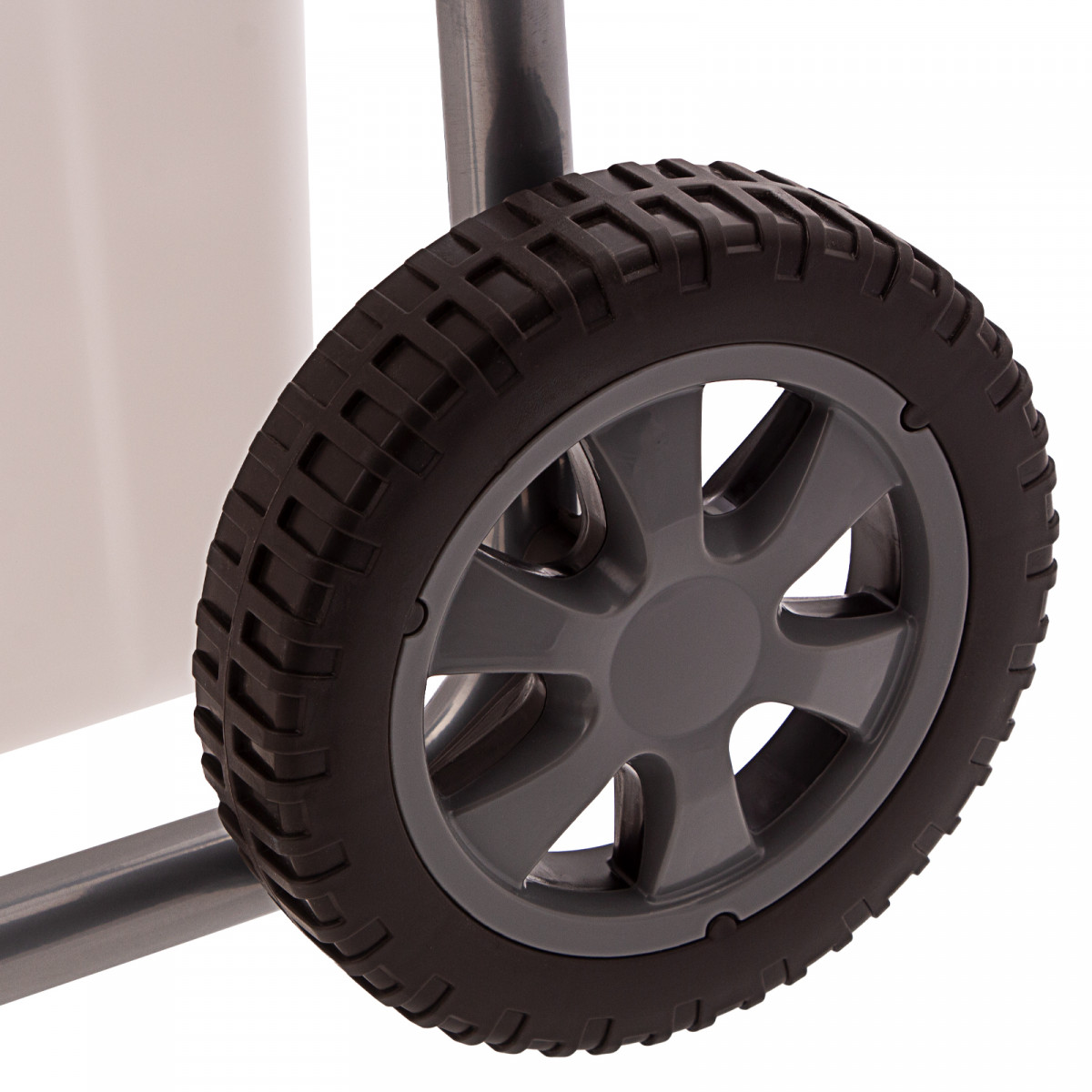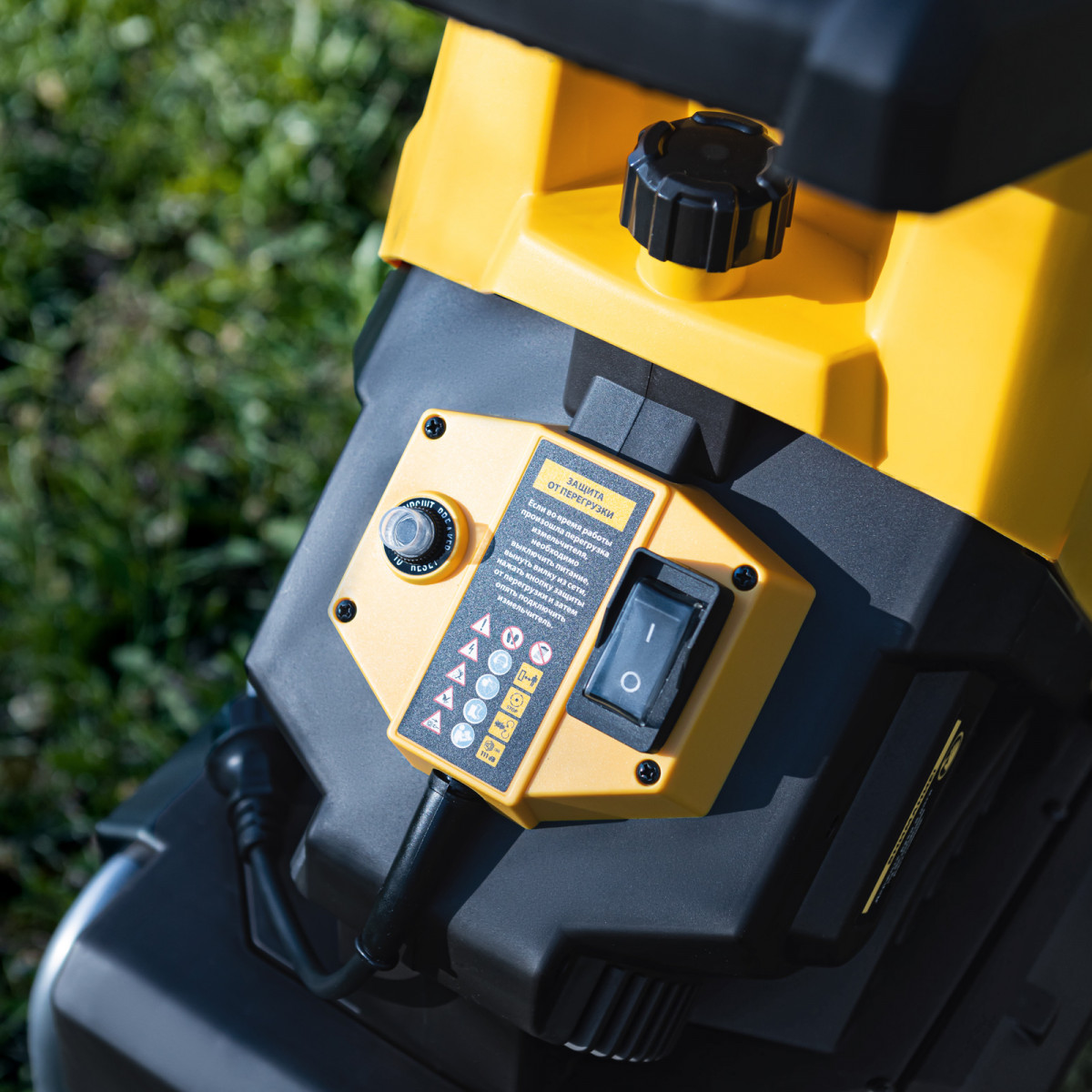 • Маневренность — для удобного перемещения по участку измельчитель оснащен колесами и ручкой.