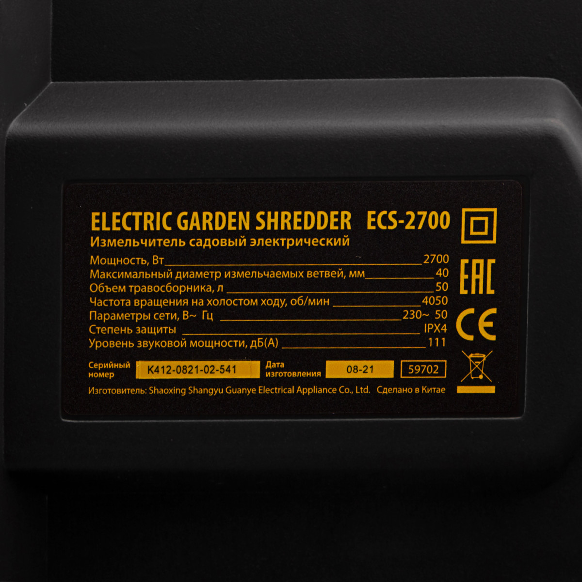 Измельчитель садовый электрический ECS-2700, 2700 Вт, 40 мм Denzel