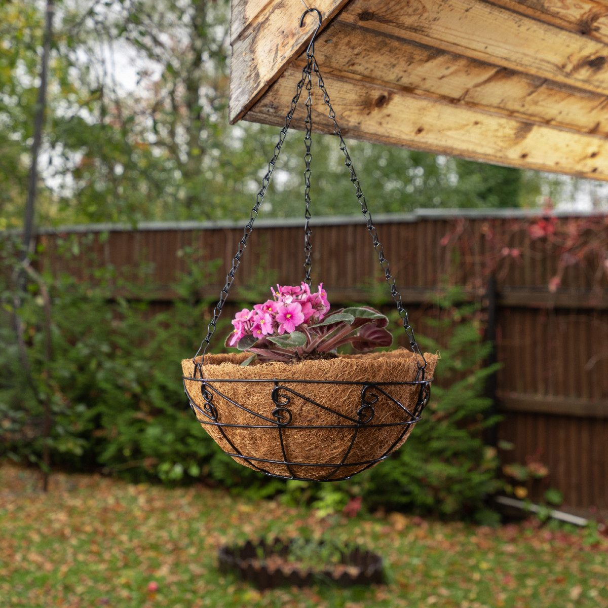 Кашпо подвесное Palisad диаметром 30 см, с орнаментом и кокосовой корзиной, предназначено для выращивания цветов, создания оригинального дизайна и украшения дома или сада. Подходит для всех типов ампельных и вьющихся растений. Кашпо можно повесить в помещении или на улице.