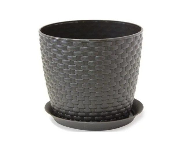 Горшок для цветов с поддоном Классика – комплект прекрасно впишется в любой интерьер. Выполнено из прочного пластика, имеет привлекательную рельефную поверхность, имитирующую плетение из ротанга. В комплект входит подставка (поддон), в которой скапливаются излишки воды. Мало весит, легко переставляется с места на место. Не разбивается. Без труда очищается от загрязнений, пыли и плесени. Сохраняет постоянную температуру, поддерживая оптимальный микроклимат для корневой системы растений.
