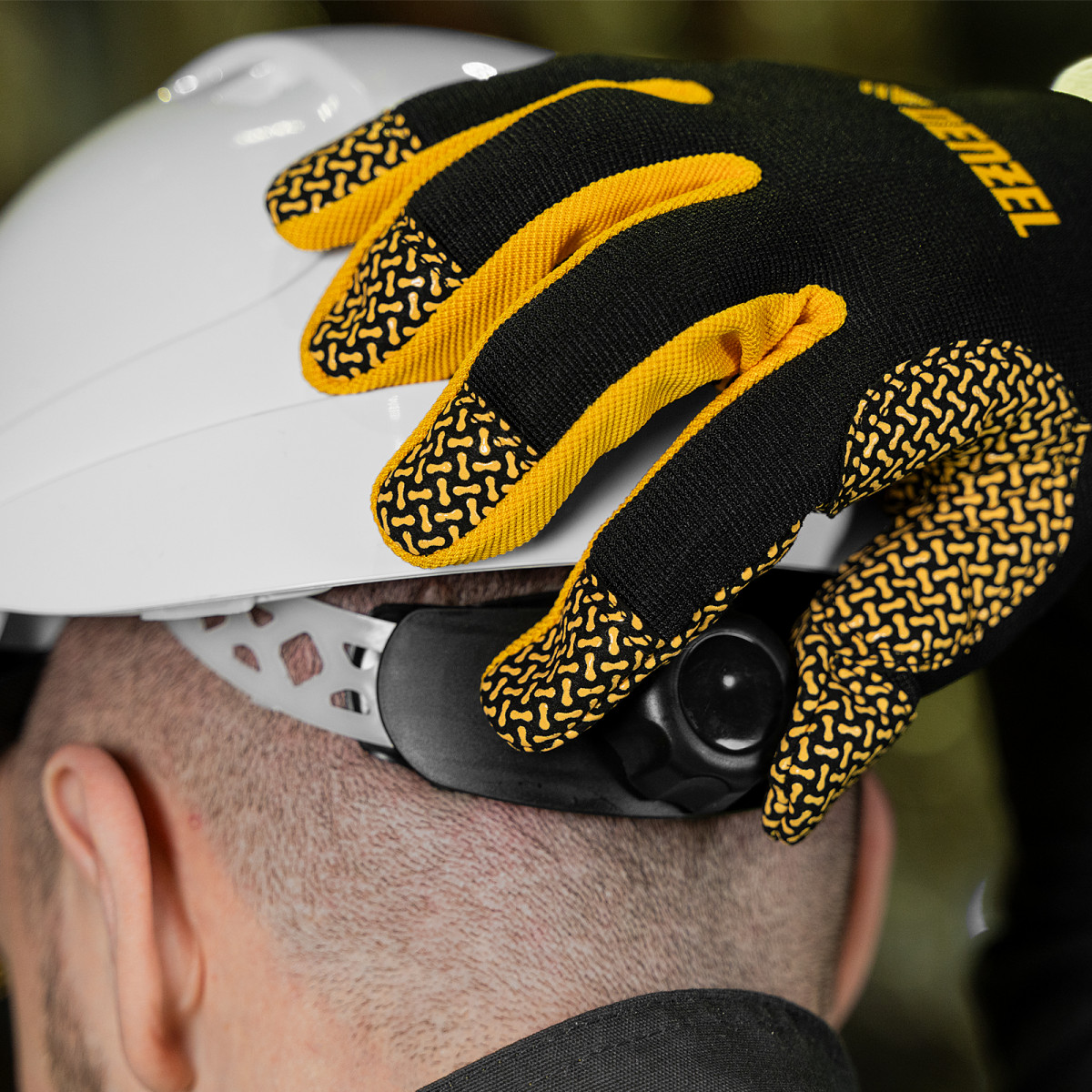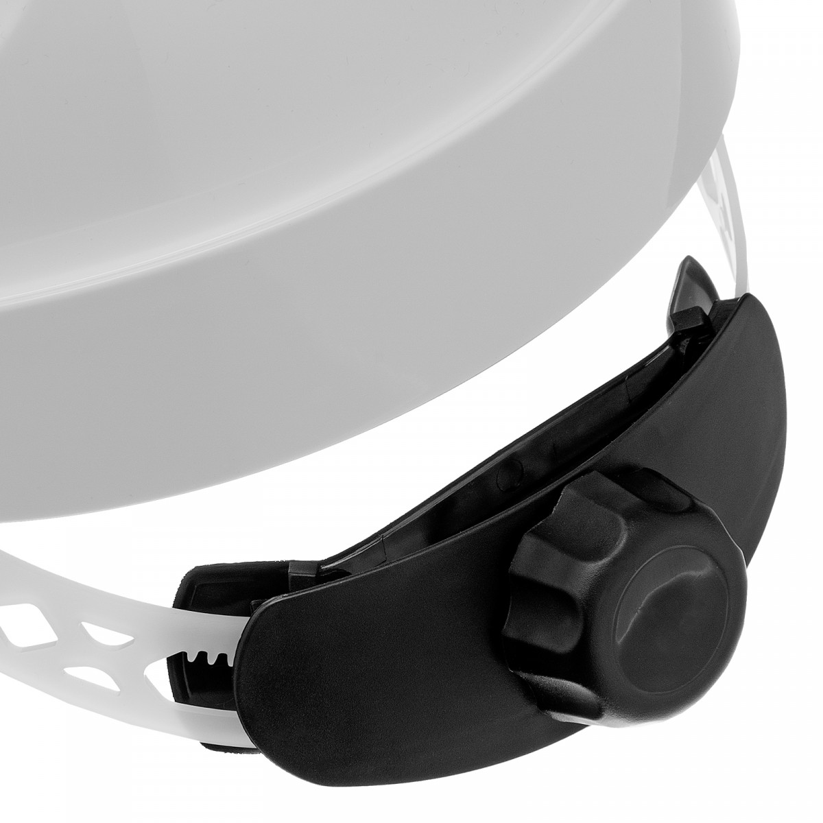 • Удобная посадка — наголовное крепление с храповиком позволяет плавно подгонять и точно регулировать размер оголовья от 52 до 62 см, каска комфортно прилегает к затылочной части головы за счет мягкой эластичной вставки.