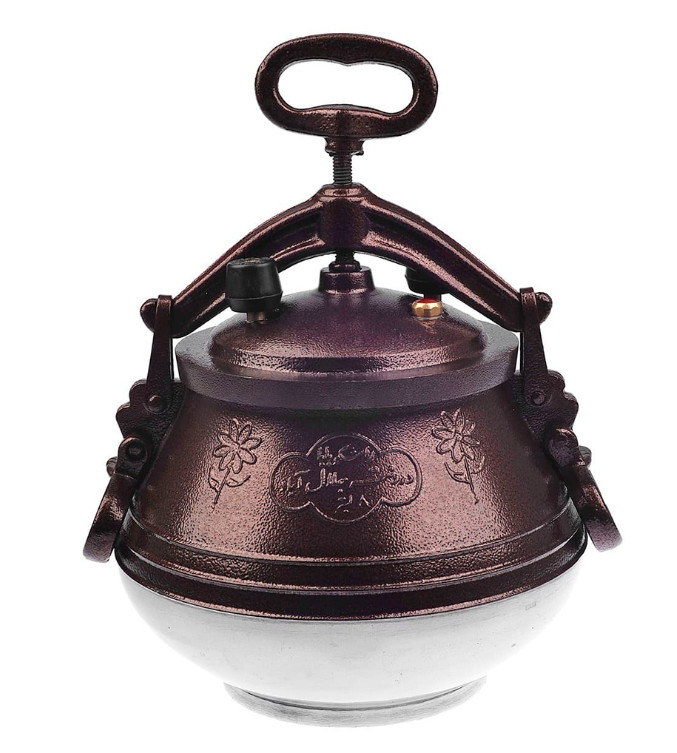 Только с виду афганский котелок выглядит необычно, фактически это обычная кастрюля-скороварка, отличающаяся утолщенными стенками и дном, округлой обтекаемой формой и зажимным устройством.