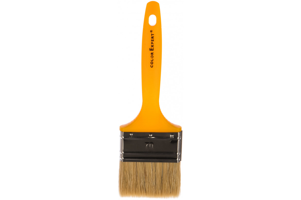 Кисть флейцевая 70 мм толщина 6 светлая щетина пластиковая лак. ручка Color Expert