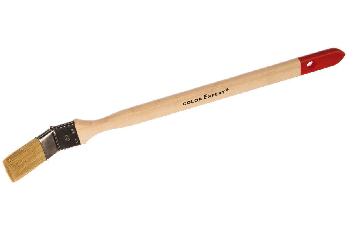 Радиаторная угловая кисть, светлая щетина, деревянная ручка изогнута для более удобного окрашивания батарей и радиаторов отопления.