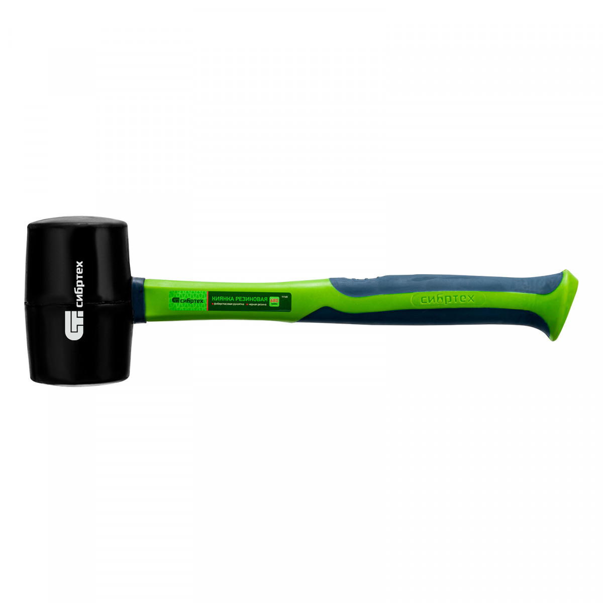 Киянка резиновая, 680 г, черная резина, фибергласовая рукоятка Сибртех