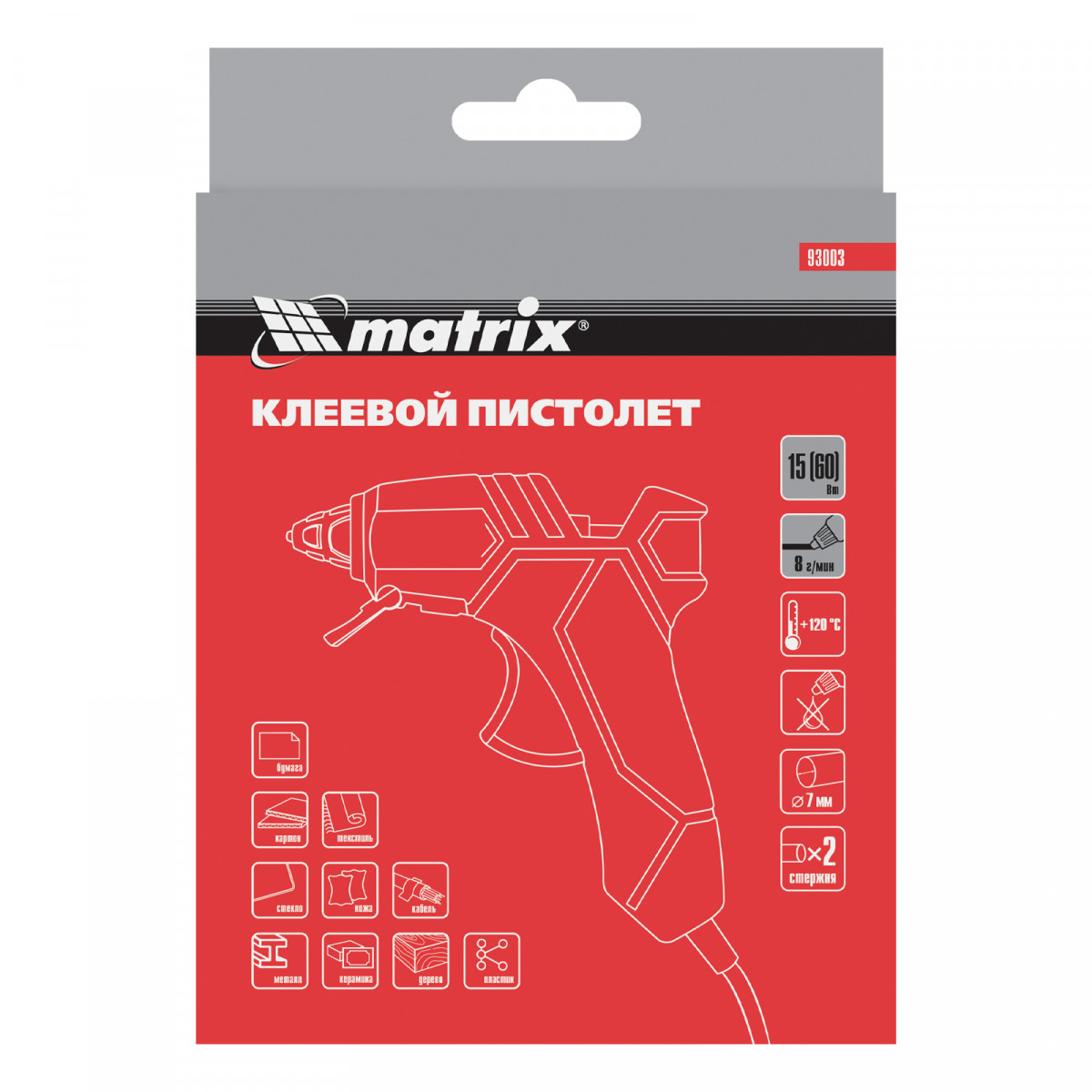 Клеевой пистолет, 7 мм, 15 (60) Вт, 8 г/мин Matrix