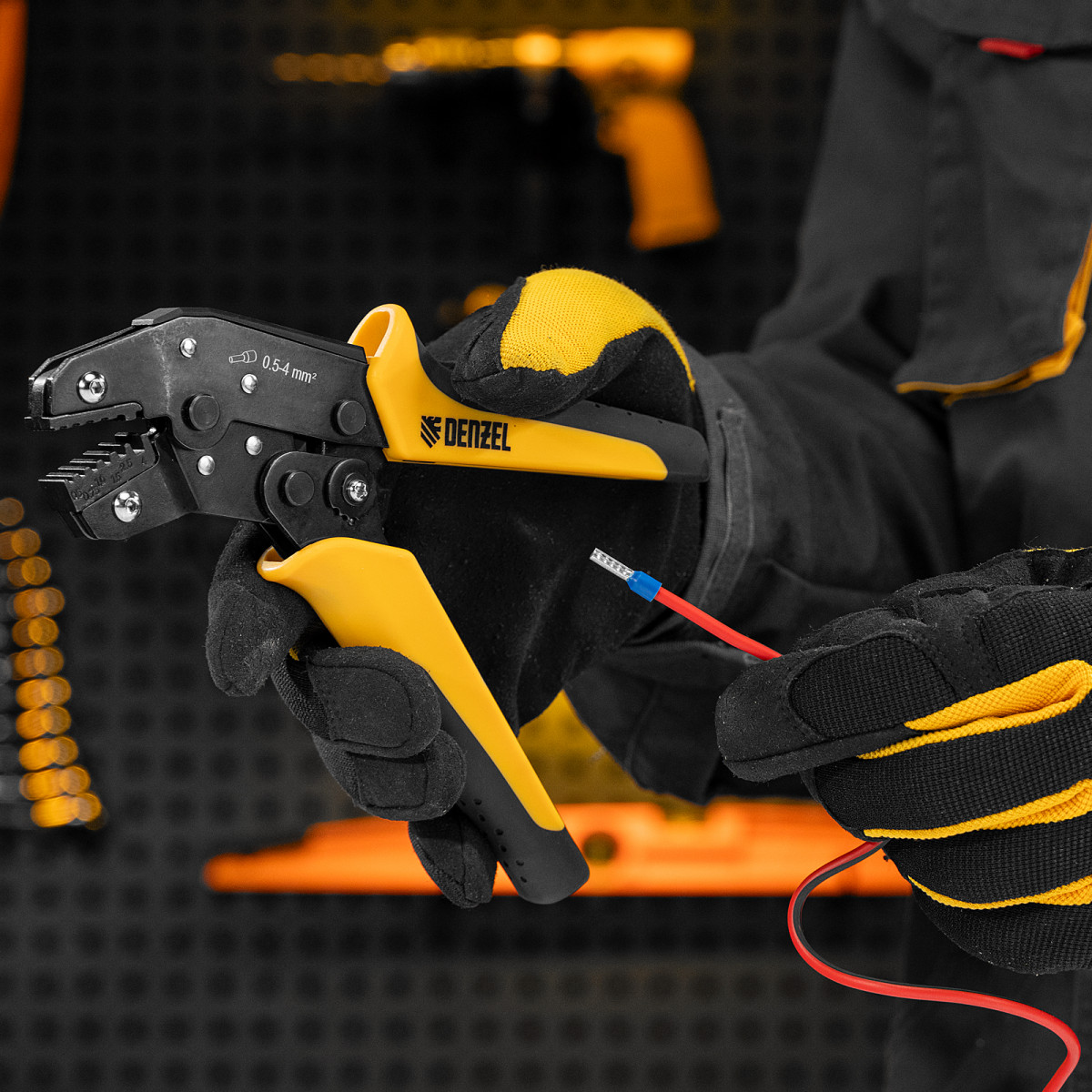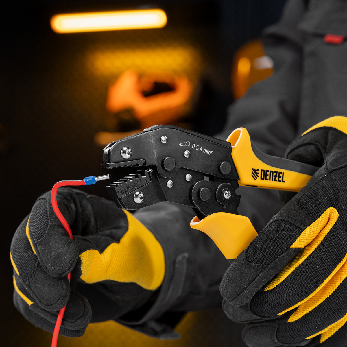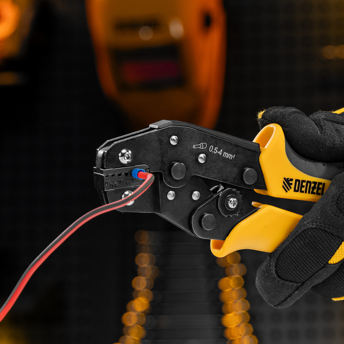 Клещи Denzel 17743 предназначены для обжима наконечников штыревых втулочных НШВ, НШВИ, НШВИ-2 сечением 0,5-4 мм². Двухрычажная передача силы сжатия позволяет увеличить эффективность работы без дополнительных усилий мастера. Инструмент пригодится частным и профессиональным мастерам при проведении электромонтажных работ.
